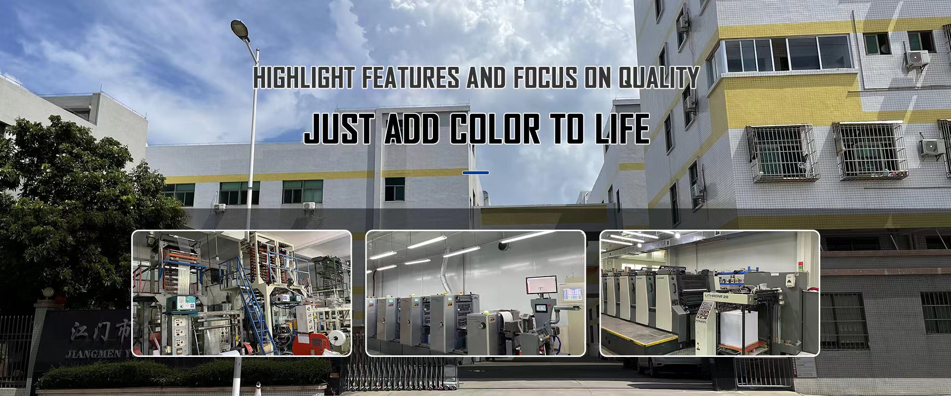 1631599054743513.jpg    廣東省江門市江海區裕輝彩色包裝印刷有限公司,創建于1996年。位于珠江三角州著名的僑鄉城市——江門市。從佛開高速、中江高速、江肇高速江門龍灣出口驅車五分鐘至禮樂北頭咀工業開發區即到,交通非常便利。本公司廠區獨立,環境優美,占地面積愈8000平方米,廠房建筑面積愈22500平方米。本公司引進了多套國內最先進技術水平的塑料彩印復合生產設備,包括8色全自動電腦套色高速印刷機、高速復合機、分切機、多用途全自動電腦制袋機,檢品機、噴碼機,全套檢測試驗儀等。具備了國內同行業最優良的硬件設施。在公司150多名管理、生產人才的努力下,我公司已儼然成為了一個集國內軟包裝行業最優秀硬件于一體的,適應市場發展需要的,品質一流,優良服務的現代企業。是目前珠三角最現代化、最具發展前景的軟包裝企業之一。公司生產加工各類塑料彩印復合包裝產品、袋子及精美廣告等。主要制造純鋁、鍍鋁、塑料等包裝膜/袋。為食品、電子產品、服裝、日用品、化妝品、五金制品、農藥、獸藥、等行業提供各種塑料復合袋及塑料復合膜的生產和印刷。可根據廠家需要,進行包裝規格圖案設計和生產;為適應市場各種需求,我司還開發多種防偽技術,例如有:激光鐳射防偽技術(已獲國家專利)、光變防偽油墨印刷技術、噴碼防偽技術和溫變油墨技術等。